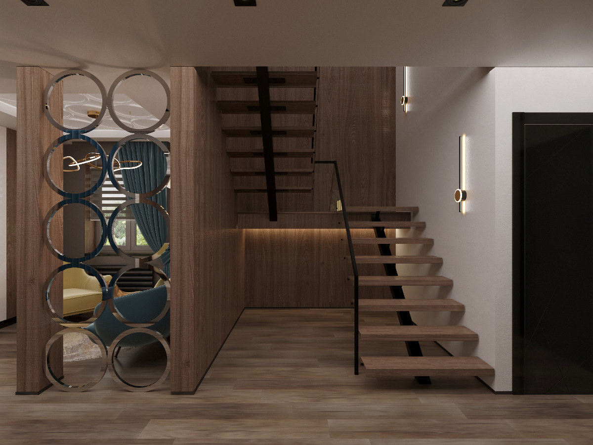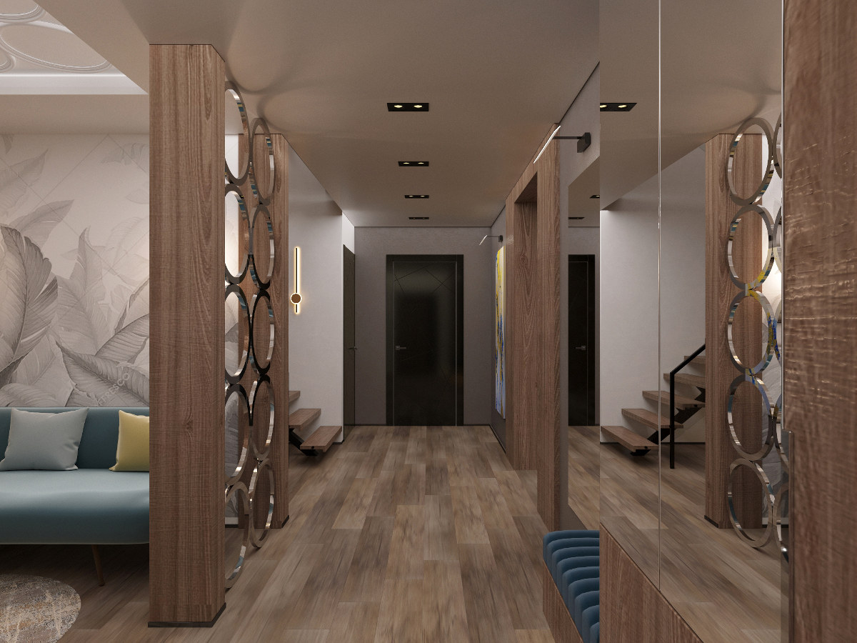 Благодаря двухскатной крыше, потолки в комнатах на втором этаже, от одной стены к другой, имели разную высоту и как следствие соответствующую скошенную форму, что не очень то нравилось не только заказчикам, но и нам. Этот вопрос был решён …