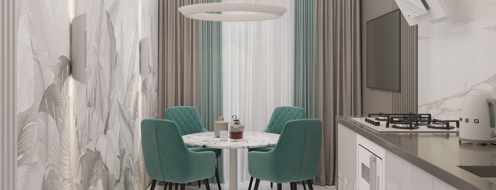 Здесь нам была поставлена задача, без каких либо перепланировок сделать из двухкомнатной квартиры трехкомнатную, да ещё и с обеденной зоной на кухне...