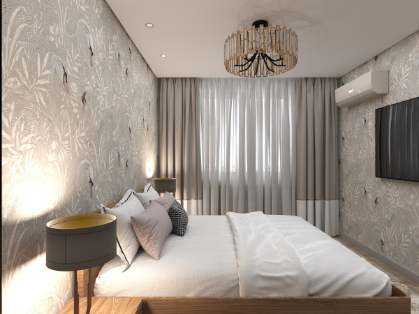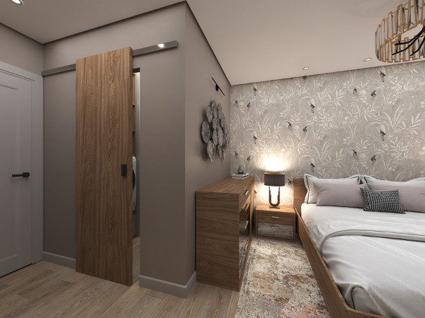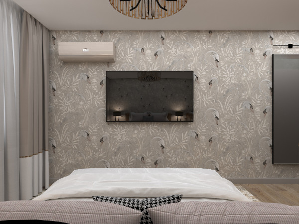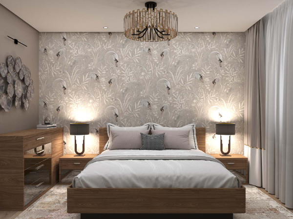 своя оригинальная идея. Чего только стоит интерьер спальни с ярким акцентом на стенах – изящные лебеди,